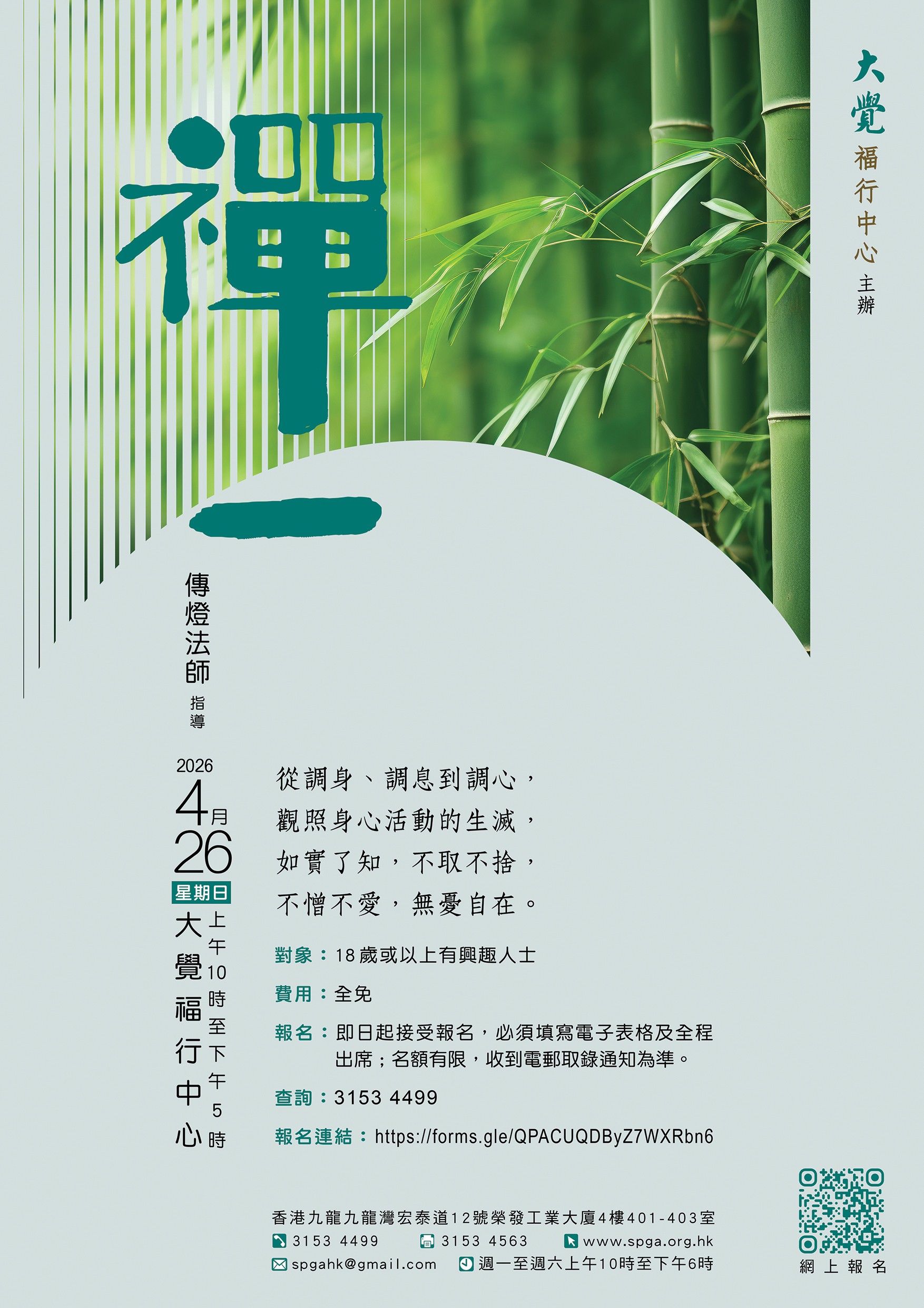 報名: 即日起接受報名,必須填寫電子表格及全程出席 ;